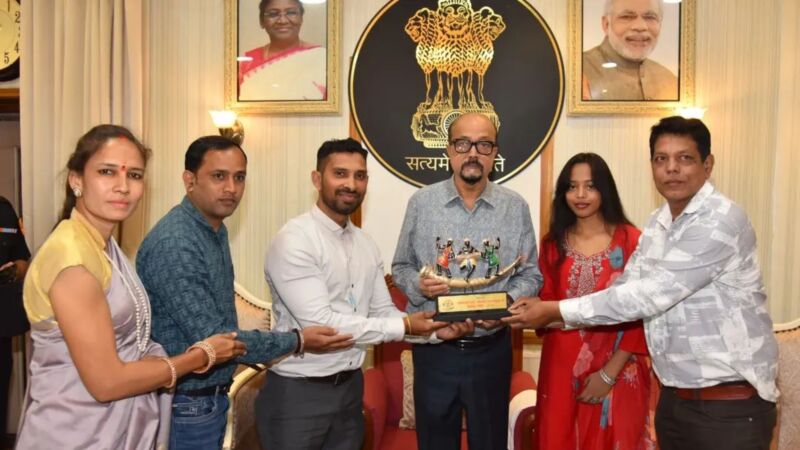 ए अवसर म टीम द्वारा छत्तीसगढ़ के पारंपरिक ढोकरा कला ले बनाय एक सुंदर प्रतीक चिन्ह महामहिम ला भेंट करे गीस। ए प्रतीक म जनजातीय नाचा-गाना, पारंपरिक वाद्य अउ सामूहिक जीवन के झलक दिखथे, जऊन हमर समृद्ध संस्कृति के चिन्हारी आय।